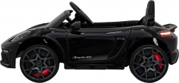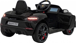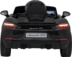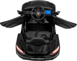 De stijlvolle elektrische kinderauto Porsche 718 Spyder RS in het zwart biedt een realistische rijervaring dankzij twee motoren van 2×45 W, een 12 V 7 Ah accu, EVA schuimbanden en een 2,4 GHz afstandsbediening met Stop-functie. Verder met LED-verlichting, openende deuren, een kunstlederen stoel met veiligheidsgordels en een MP4-multimediapaneel met Bluetooth, USB, AUX en FM-radio.