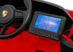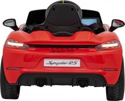 De gelicentieerde Porsche 718 Spyder RS kinderauto valt op door de precieze afwerking, functionele deuren en een sportieve stoel van eco‑leer met veiligheidsgordels. Dankzij vier schokdempers (2× voor, 2× achter) en EVA schuimwielen 22×8 cm biedt hij comfort, zelfs op oneffen terrein.