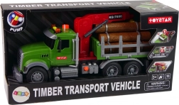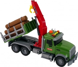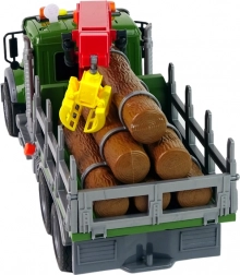 In de verpakking vind je een vrachtwagen, aanhanger en realistische stammen – klaar voor actie direct na het uitpakken.