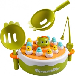 Dit houten magnetische spel is een geweldige keuze voor de eerste gezelschapsspelletjes. Kinderen vangen met hengels met magneten kleurrijke dinostukjes, trainen de precisie van bewegingen en concentratie en hebben ondertussen veel plezier.