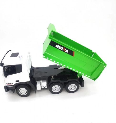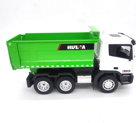 Groene op afstand bestuurbare vrachtwagen op schaal 1:18 biedt realistisch bouwplezier voor elke kleine bouwer. Dit model maakt het mogelijk om losse materialen en bouwbenodigdheden te vervoeren via afstandsbediening.