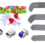 Drie politievoertuigen, verkeersborden, pylonen en “weg”-delen vergroten de speelmogelijkheden en ondersteunen de ontwikkeling van fantasie en fijne motoriek.