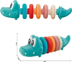 Speelse en veilige zachte piramide in de vorm van een krokodil ondersteunt de ontwikkeling van de fijne motoriek, het leren van kleuren en cijfers en de oog-handcoördinatie. Dankzij het zachte rubberen materiaal is hij geschikt vanaf 6 maanden en zorgt hij elke dag voor veilige en stimulerende speelpret.