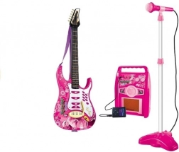Deze elektrische gitaar is ontworpen voor kinderen die van muziek houden en rocksterren willen worden. Dankzij de samenstelling en de meegeleverde onderdelen zoals een microfoon, versterker en verstelbaar statief is hij volledig klaar voor muzikale optredens.