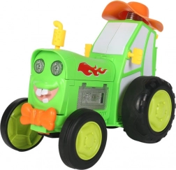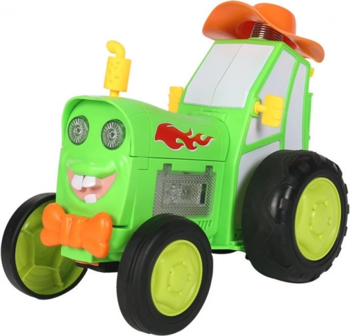 Ontdek de springende afstandsbestuurbare tractor die opvalt door het vrolijke design, lichteffecten en muziek. Dankzij de intuïtieve controller hebben kinderen volledige controle over de rit – vooruit, achteruit en zijwaarts – en kunnen ze de speciale acrobatiek met geopende motorkap activeren, waarbij de tractor op twee wielen rijdt.