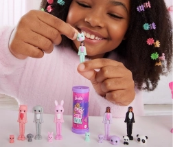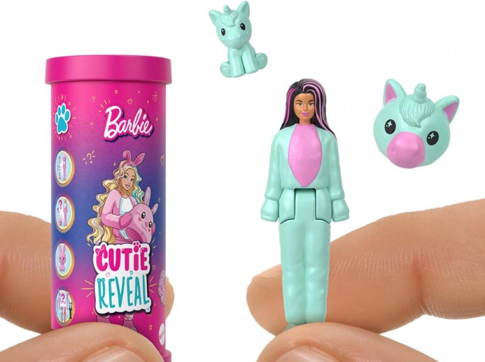 De mini poppetjes BARBIE Cutie Reveal brengen het plezier van onthullen – trek de capuchon van het dierenkostuum af en ontdek een uniek gezicht, haar en stijl. Elk figuurtje heeft een bewegende taille en kan worden uitgestald op een standaard in hartvorm. Ook inbegrepen is een mini diertje, waarmee kinderen gemakkelijk hun eigen verhalen verzinnen.