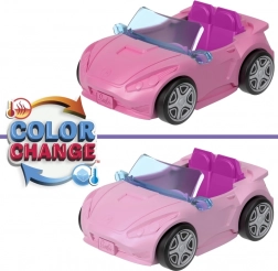 Bij onderdompeling in koud water verandert de auto van kleur, en in warm water keert hij terug naar het origineel – het effect is steeds opnieuw te herhalen. Door het formaat is de set makkelijk mee te nemen en een geweldig cadeau en aanwinst voor elke verzameling. Combineer met andere Mini Barbie Land-sets en bouw je eigen mini-stadje.