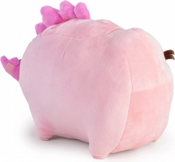 De roze Pusheenosaurus combineert de kenmerken van een kat en een dinosaurus met stekels op de rug.
