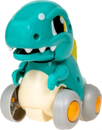 De inertiële frictieaandrijving laat de dinosaurus zelfstandig rijden na een zachte duw. Perfect voor actieve spelletjes en eerste races op tapijt en vloer.
