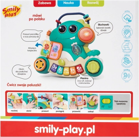 Ontdek het schattige pratende pianino Mijn Dino – een interactieve muzikale speelgoedpiano die de spraakontwikkeling, het gehoor en de fijne motoriek ondersteunt. Het speeltje spreekt Pools en leert kinderen getallen, kleuren, dieren en muziekinstrumenten terwijl ze spelen en nieuwe geluiden ontdekken.
