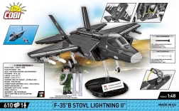 Bouwset F-35B STOVL Lightning II biedt de mogelijkheid om een van de modernste multirole-straaljagers ter wereld te bouwen uit 610 hoogwaardige COBI-onderdelen. Geniet van een fascinerende bouwervaring met gedetailleerde componenten en een realistisch design.