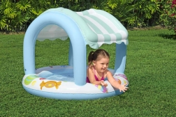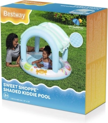 Kinderzwembad met opblaasbaar dak Bestway Pączuś is ideaal voor buitenspelen. Biedt bescherming tegen de zon en plezier dankzij kleurrijke motieven.