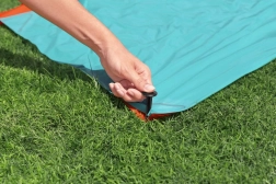 De glijbaan is eenvoudig te installeren – sluit de adapter aan op de tuinslang en je bent klaar voor actie. Geniet van solo glijden of wissel van plaats met vrienden. Aan de randen van de glijbaan zijn pads voor het regelen van de waterstraal geplaatst, die interactie tussen de glijbanen mogelijk maken.