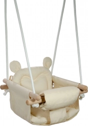 De schommel is ontworpen met decoratieve elementen die doen denken aan de oren van een beer, wat speelsheid en comfort toevoegt.