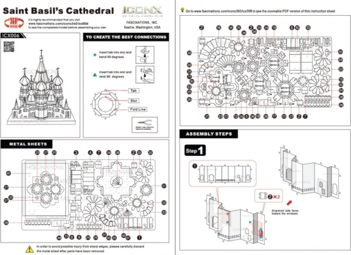 METAL EARTH ICONX brengt een verfijnde 3D-metalen bouwset van de Sint-Basiliuskathedraal – het iconische symbool van Moskou. Uit dunne roestvrijstalen plaatjes creëert u met behulp van vergrendelingen en buigingen een miniatuurreplica met verbluffende details die opvallen thuis, op kantoor of op school.