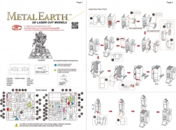 De kit bevat 2 stalen plaatjes (21 × 11 cm) en een uitgebreide geïllustreerde handleiding. De onderdelen worden uit de plaatjes gedrukt en met buiglipjes in vergrendelingen vastgezet – dus zonder lijm. Voor comfortabeler werken raden we kleine zijsnijtang/schaartje en fijne platte tang aan (niet inbegrepen). Het voltooide model meet ongeveer 9 × 4,5 × 3 cm en is geschikt vanaf 14 jaar.