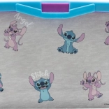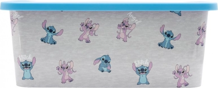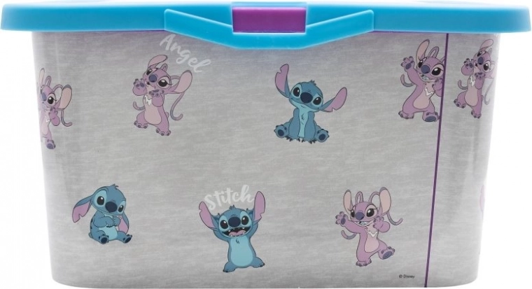 De kinderopbergbox is versierd met vrolijke figuren van Stitch en Angel op het deksel en de zijkanten, waardoor elke opbergplek een leuke aanvulling wordt.