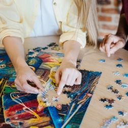 - Eenvoudige hantering van de volledig gelegde puzzel zonder risico op uit elkaar vallen, dankzij de uitzonderlijke kartondikte.