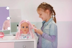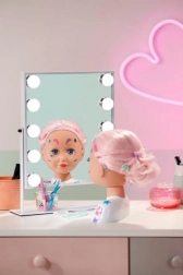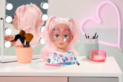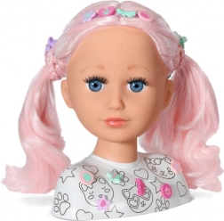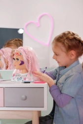 Deze creatieve kapperskop is ideaal voor jonge stylisten en visagisten. De lange roze haren van hoogwaardige nylon blijven mooi in model en zijn perfect om te kammen, vlechten en te stylen. Met de meegeleverde stiften en het sjabloon kunnen bovendien eenvoudig originele make-uplooks en leuke motieven op het gezicht worden gemaakt.