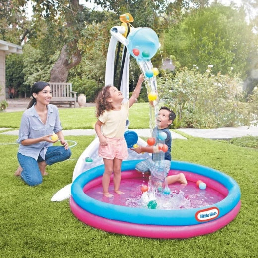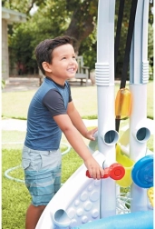 Haal het aquaparkplezier in huis! De Little Tikes water speelzone biedt een dubbele waterval, een opblaasbaar zwembad, een interactieve water- en ballentransportband en tot wel 25 plastic ballen voor eindeloos speelplezier. Sluit eenvoudig een tuinslang aan en start de spetterpret – of speel binnen zonder water.