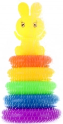 Deze kunststof stapeltoren met ringen is een geweldige keuze voor spelenderwijs leren. Kinderen sorteren en rijgen de ringen op grootte of kleur en plaatsen als laatste onderdeel het lieve konijntje. Het speelgoed stimuleert oog-handcoördinatie, geduld en het herkennen van kleuren en groottes.