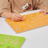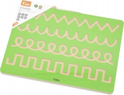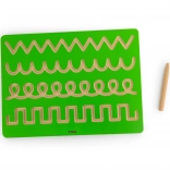 Deze compacte houten plaat is ontworpen voor een intuïtieve training van streken en richtingen die kinderen gebruiken bij tekenen en schrijven. Met de meegeleverde houten stylus trekt het kind zigzaglijnen, lussen en bogen over, waardoor de juiste pengreep en vloeiende bewegingen worden versterkt.