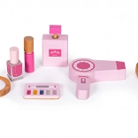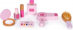 De kaptafel is voorzien van speelgoed zoals een föhn, borstel, poederdoos met applicator, oogschaduwpalette, nagellak, lippenstift en een parfumflesje. Alle accessoires hebben geen scherpe randen en zijn daardoor volledig veilig voor kinderen.
