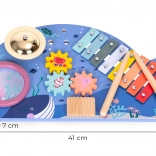 De muziektafel is rijkelijk versierd met oceaanmotieven en heeft kleurrijke elementen die direct de aandacht van het kind trekken.