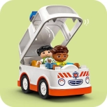 Deze creatieve set voor de allerkleinsten bevat een ambulance en twee LEGO DUPLO figuren – een hulpverlener en een meisje – ideaal om spannende reddingsscènes te verzinnen. Dankzij de eenvoudige bouw en toegankelijke onderdelen leren kinderen op een natuurlijke manier samenwerken, zorgzaam zijn en logisch denken.