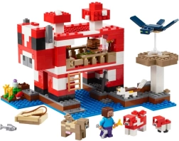 Stap in de wereld van LEGO Minecraft en bouw een groot huis in de vorm van een paddenkoe met een tuin vol tarwe en paddenstoelen. Naast Steve ontmoet je een rode en een bruine paddenkoe, een kalfje, een driekleurige kat en een aanvallende phantom. Open het interieur, ontdek de uitrusting en ga op pad voor buit.