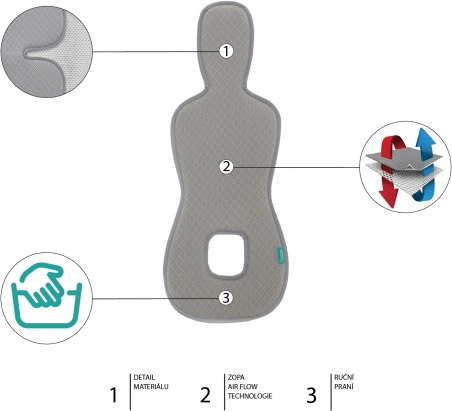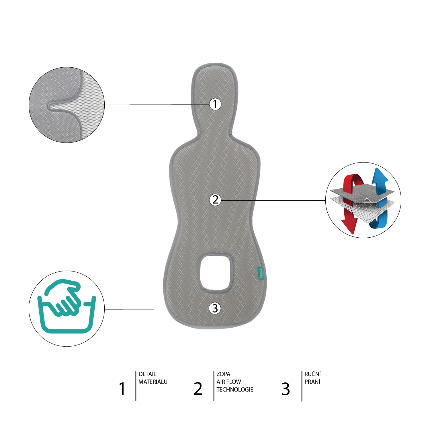 De ademende inleg Zopa Breeze zorgt voor comfort voor je kind tijdens hete zomerse autoritten. Uitgerust met Zopa Air Flow-technologie, die oververhitting en overmatig zweten voorkomt, en past zich aan de grootte van het kind en het model autostoel aan.
