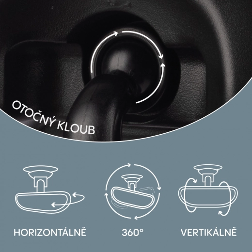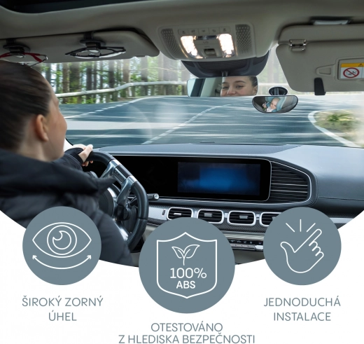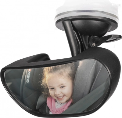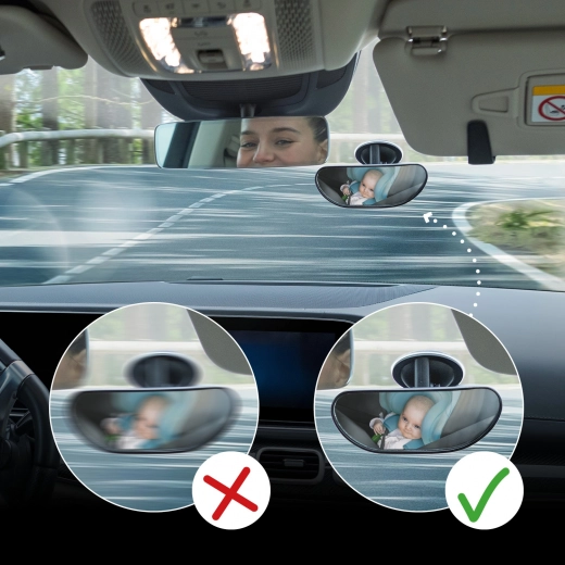 Compacte achteruitkijkspiegel voor perfect toezicht op uw kind tijdens het rijden. Eenvoudige installatie, 360° rotatie en modern design.