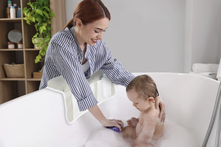 Maak de tijd aan het bad aangenamer met deze kwalitatieve mat die maximaal comfort biedt tijdens het baden van kinderen. Dankzij de tweedelige constructie kunt u de armsteun precies naar behoefte instellen, ongeacht de grootte van het bad.