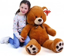 Schattige pluchen beer Kuba met een lengte van ca. 100 cm, gemaakt van hoogwaardige, zachte pluche in een donkerbruine kleur. Hij is versierd met een satijnen strik en wordt geleverd met een papieren hartvormig label voor een persoonlijke boodschap. Geschikt voor kinderen vanaf 0 jaar – een perfect cadeau voor klein en groot.