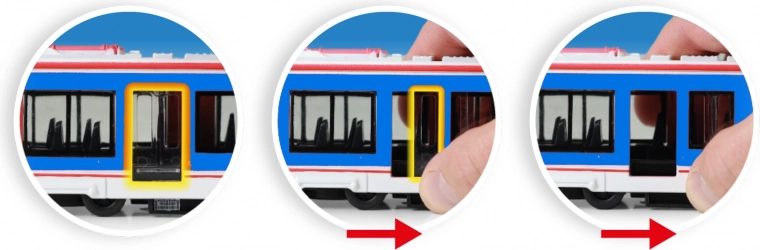 De deuren kunnen eenvoudig worden geopend en gesloten via een hendel onder de deuren, wat realistisch spelen stimuleert.
