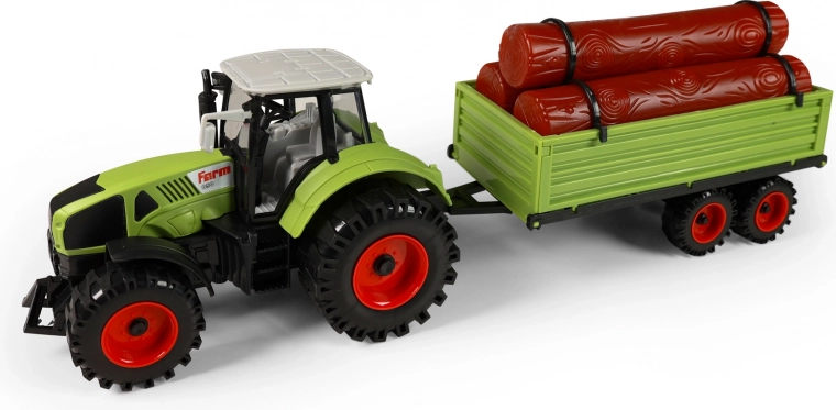 - Realistische set – tractor + aanhanger met boomstammen