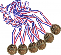Geef elke kleine winnaar het plezier van de zege. Gouden medailles met het opschrift WINNER en sterretjes zien er representatief uit en zijn toch veilig en licht dankzij PVC. Dankzij het tricolore lint zijn ze comfortabel te dragen en eenvoudig uit te delen bij wedstrijden of events.