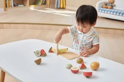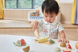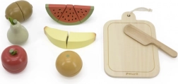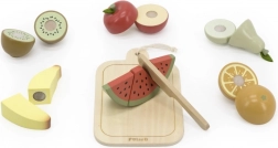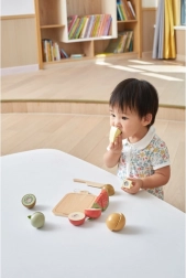 Met deze set houten fruit kunnen kinderen urenlang plezier beleven en tegelijkertijd leren. Met het houten mesje kunnen kinderen veilig fruit snijden en combineren naar hun eigen fantasie.