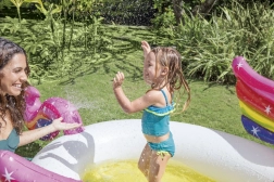 De grootte van het zwembad biedt voldoende ruimte voor kinderen die willen genieten van zomerse waterpret onder toezicht van hun ouders.