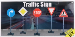 - De set bevat 5 verschillende verkeersborden.