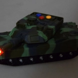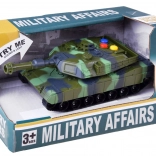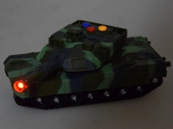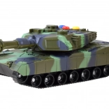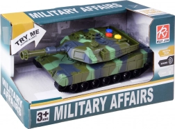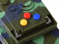 De militaire tank is gemaakt van hoogwaardig plastic, wat zorgt voor een realistische uitstraling en duurzaamheid. De tank is uitgerust met drie gekleurde knoppen die realistische geluiden simuleren, zoals rijden, gereedmaken en het afvuren van een projectiel, of een sirene. Bij elke druk op de knop ervaar je de authentieke sfeer van een gevechtsactie.