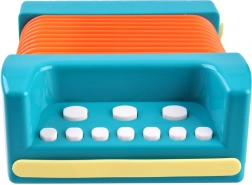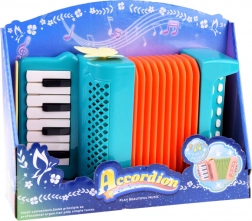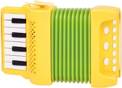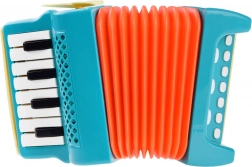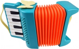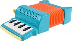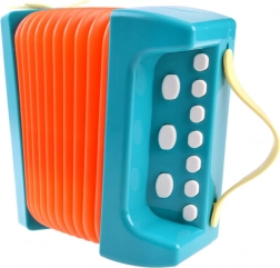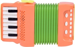 Deze kleurrijke kinderaccordeon is gemaakt van duurzaam plastic in levendige kleuren en is ontworpen om kinderen plezier te bezorgen bij het spelen. Het ontwerp bevat een oranje balg en toetsen, waarmee eigen melodieën gecreëerd kunnen worden. De accordeon bevat functionele knoppen waarmee kinderen het volume gemakkelijk kunnen afstellen en verschillende melodieën kunnen selecteren.