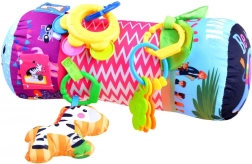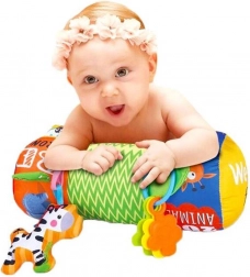 De rol kan ook worden gebruikt als stabilisator in een autostoeltje, in een kinderwagen of thuis. Vrolijke kleuren en patronen trekken de aandacht van het kind en stimuleren zijn visuele, auditieve en tastzin. De rol heeft een afmeting van 42 x 16 x 16 cm en is gemaakt van onderhoudsvriendelijke materialen.