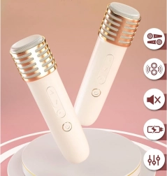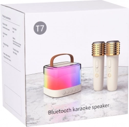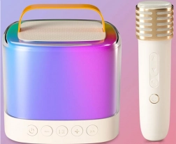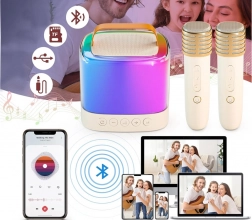Geniet overal van plezier dankzij de draagbare draadloze mini luidspreker met twee microfoons. Deze geweldige set maakt het mogelijk om in duo of solo te zingen dankzij de twee microfoons. Dankzij de compacte afmetingen neem je hem gemakkelijk mee naar het speelveld, een uitstapje of naar vrienden en organiseer je een geweldige disco. De mogelijkheid om verbinding te maken via bluetooth stelt je in staat karaoke te zingen rechtstreeks vanaf je telefoon.
