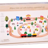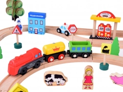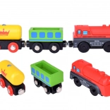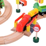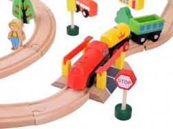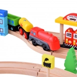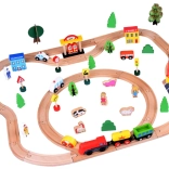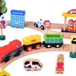 Deze geweldige houten treinset is ideaal voor de ontwikkeling van de verbeeldingskracht en fijne motoriek van kinderen. Het bevat: