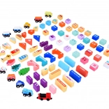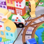 - Stadsblokken: Verschillende houten blokken die kunnen worden gekoppeld en gebouwd in verschillende configuraties.