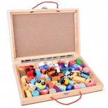 Bevat een lichte houten koffer voor gemakkelijk hanteren en transport, en maakt opslag van alle bouwblokken mogelijk.