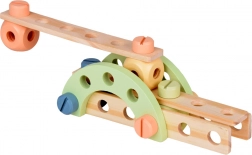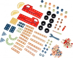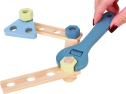 De bouwset biedt kinderen de kans om de functie van gereedschap te leren kennen en handelingen van volwassenen na te bootsen, zoals houtbewerking. Werken met bouten en moeren helpt bij het versterken van handspieren en verbetert de coördinatie van zicht en beweging. Dankzij zijn veelzijdigheid is deze set ideaal voor zowel binnen- als buitengebruik, en is het een geweldige manier om tijd door te brengen met familie.