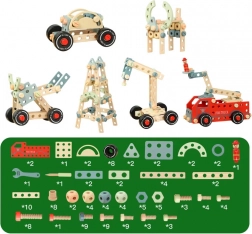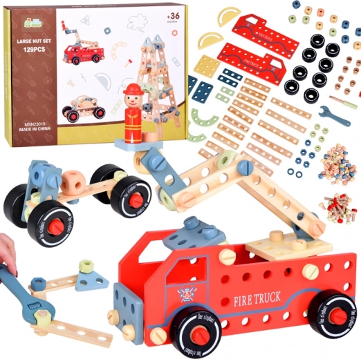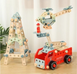 Duik in een creatieve wereld met onze houten bouwset, die de ontwikkeling van essentiële vaardigheden bij kinderen ondersteunt. Deze educatieve set maakt het mogelijk om verschillende modellen te creëren, zoals brandweerwagens, vliegtuigen en andere creatieve vormen.