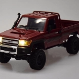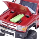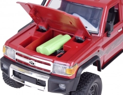 Gedetailleerde carrosserie van de TOYOTA LAND CRUISER, te openen motorkap en authentieke accessoires komen tot hun recht in de vitrinekast en tijdens het rijden in het terrein.